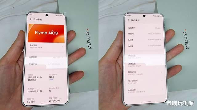 6.3英寸小屏自由使用。来到正面屏幕,魅族22的小屏意料之中,6.3英寸屏幕不说是黄金尺寸,至少单手使用,确实更加轻松。机身屏幕一样是2670*1200分辨率,460ppi精度,显示效果更清晰锐利。白色面板的存在,在户外使用,连机身边框都是焦点,配合全局浅色系主题,让机器观感更加细腻。日常使用,偶尔玩下竖屏游戏,拍照的话,单手都可以轻松操作。