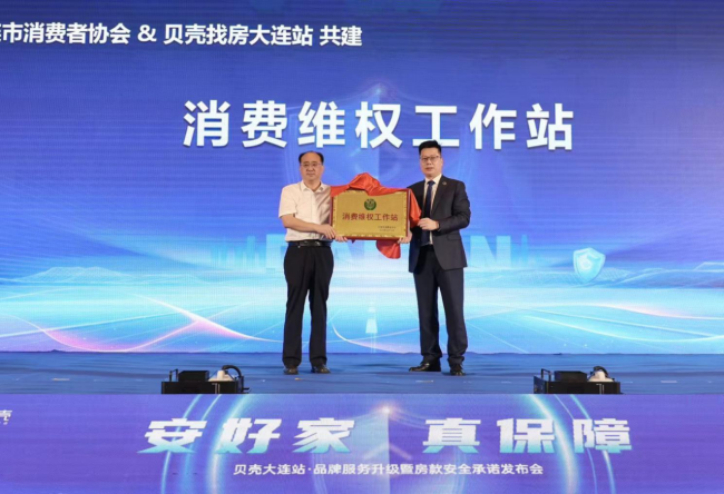 现场,大连市消费者协会和贝壳大连站政企携手,推动“消费维权工作站”共建共治。此次共建,不仅体现了政府对贝壳长期以来在规范交易、保障消费者权益等方面工作的肯定,更意味着贝壳正式纳入本市消费者权益保护社会共治体系。大连市消费者协会秘书长邵立新在致辞中表示:“我们希望通过与贝壳找房开展更加紧密的合作,营造安全放心的房地产消费新场景,也希望贝壳找房充分发挥互联网平台带动力,为经纪机构做好服务和赋能,不断坚守规范底线、严控交易风险,全力保障滨城消费者的权益。”